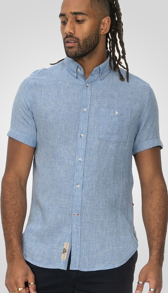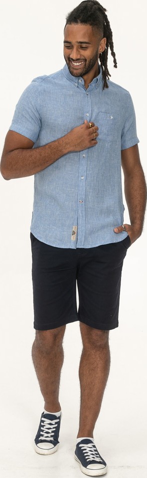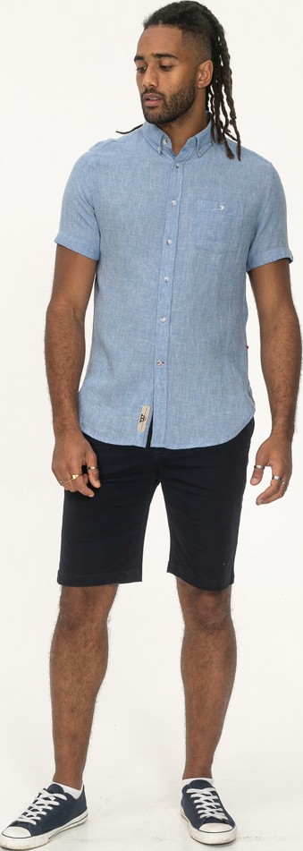 Guide des tailles - D555 Falmouth 1 Linen Mix Short Sleeve Shirt With Button Down Blue