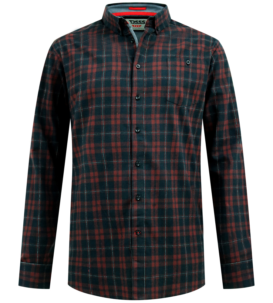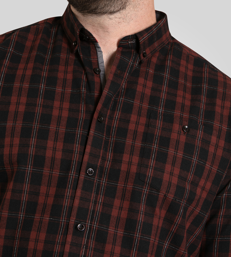 Guide des tailles - D555 Horsham Long Sleeve Shirt with Chest Pocket Burgundy/Black Check