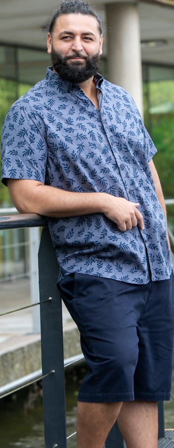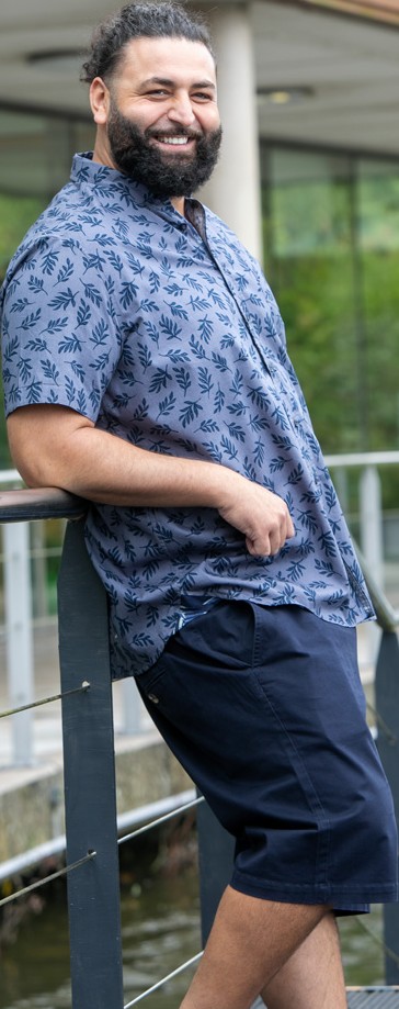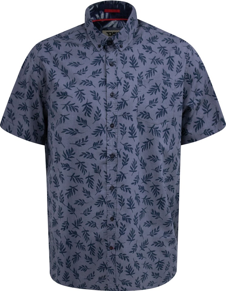 Guide des tailles - D555 Kettering Hawaiian Leaf AOP Short Sleeve Button Down Collar Shirt Denim