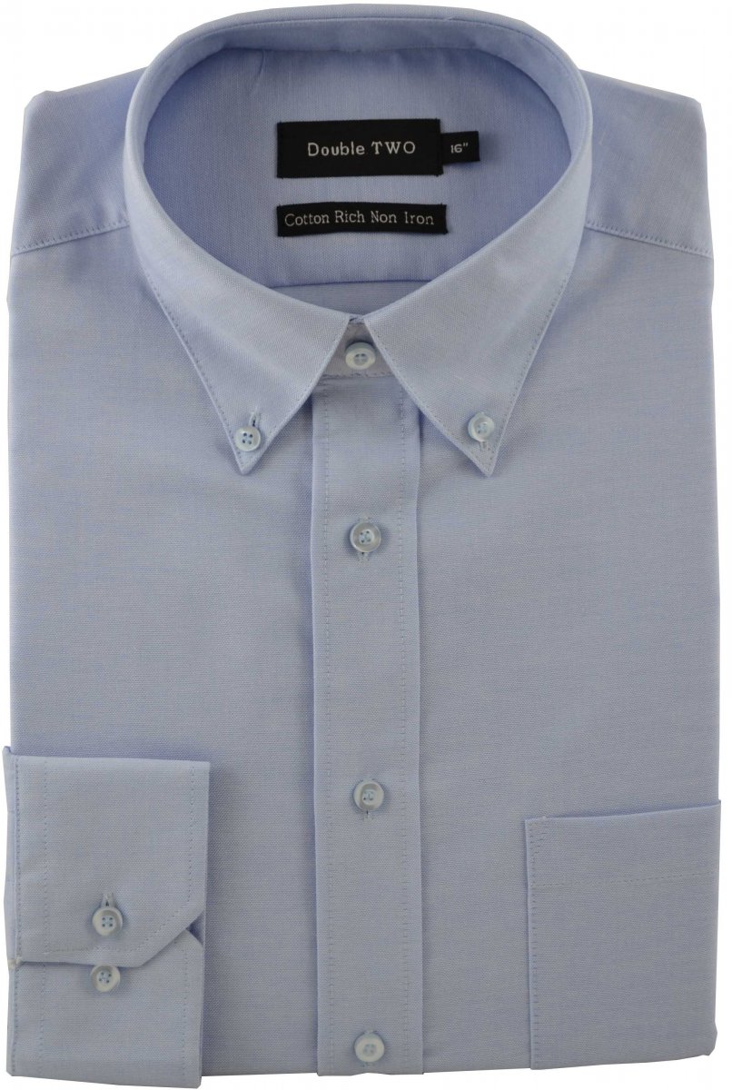 Double TWO Non-Iron Oxford Long Sleeve Blue