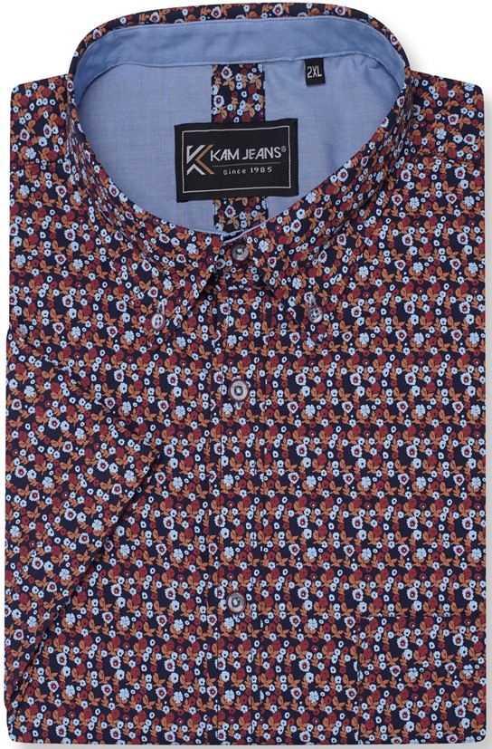 Guide des tailles - Kam Jeans 6326 Mini Floral Print Short Sleeve Shirt Navy