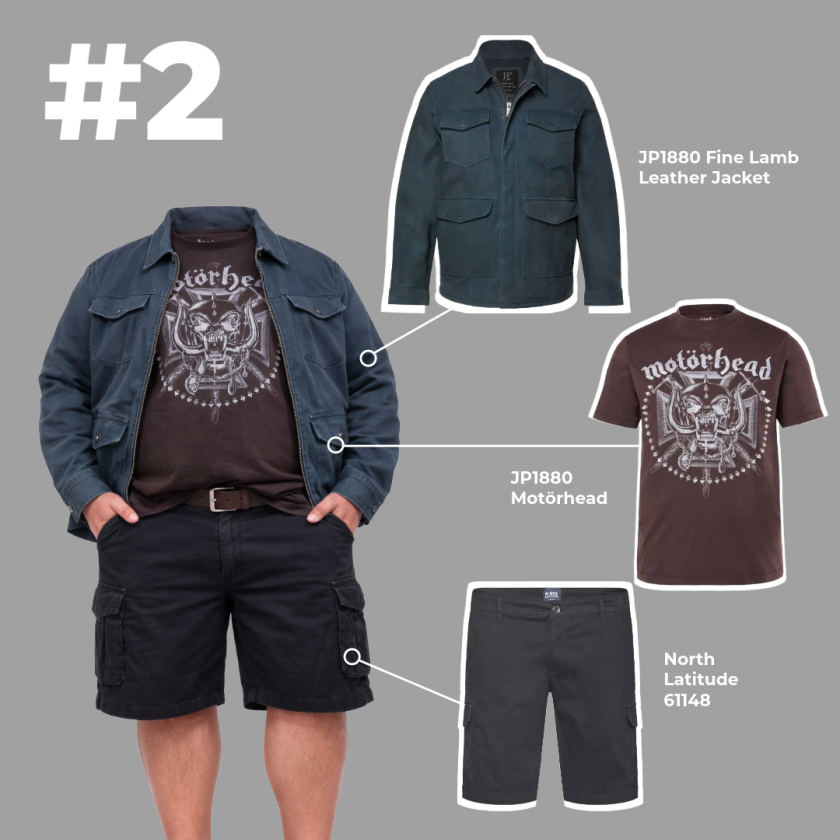C’est un bon choix pour les journées de printemps plus fraîches. La veste apporte de la chaleur, le T-shirt garantit le confort, et le short cargo ajoute des poches pratiques.