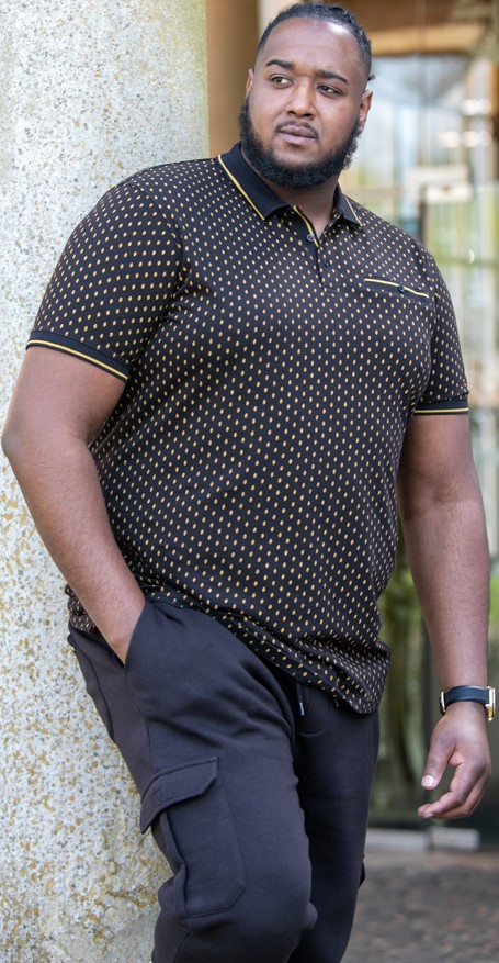 Guide des tailles - D555 RAUL AOP Jersey Polo With Jacquard Collar, Ribs And Chest Pocket Black