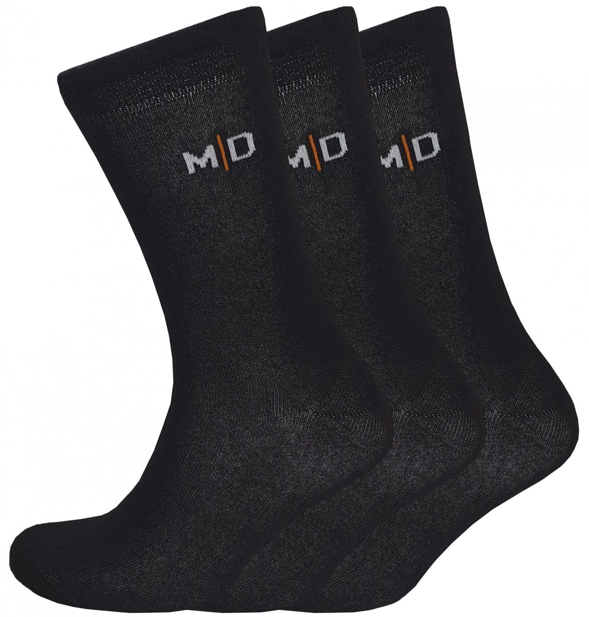 Un pack de 3 (6pcs) chaussettes de notre propre marque Motley Denim. Noir uni avec un petit logo MD sur la jambe. Les chaussettes sont composées de 50% de coton, 48% de polyester et 2% d' élasthanne et peuvent être lavées à 40 degrés. Elles conviennent aux pieds dont la pointure est comprise entre 41 et 46.