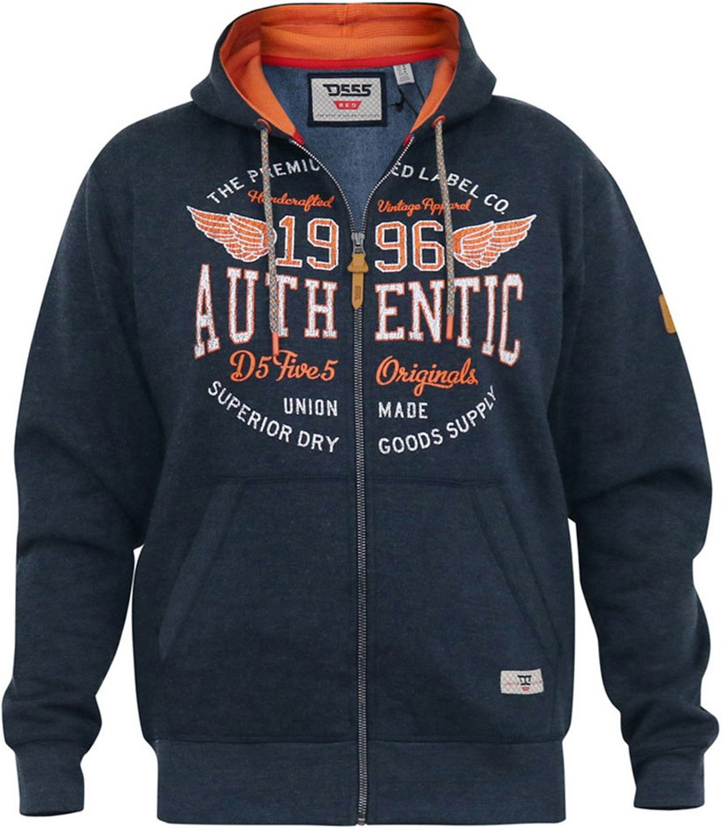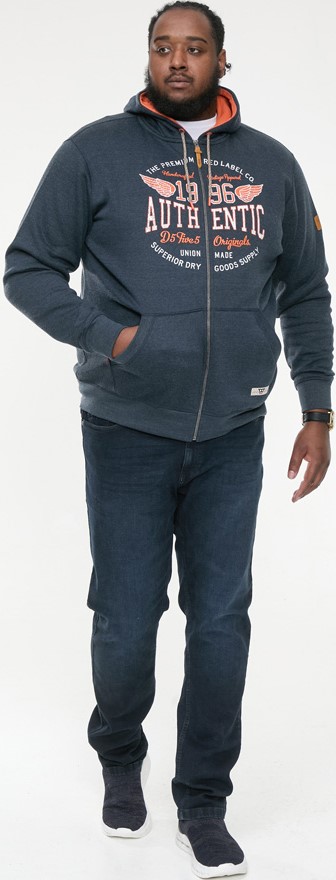 Guide des tailles - D555 HAMILTON Full Zip Hoody With Authentic 1996 Chest Print Denim