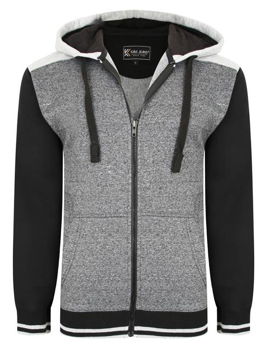 Guide des tailles - Kam Jeans 7042 Zip Thru Panelled Hoody Charcoal