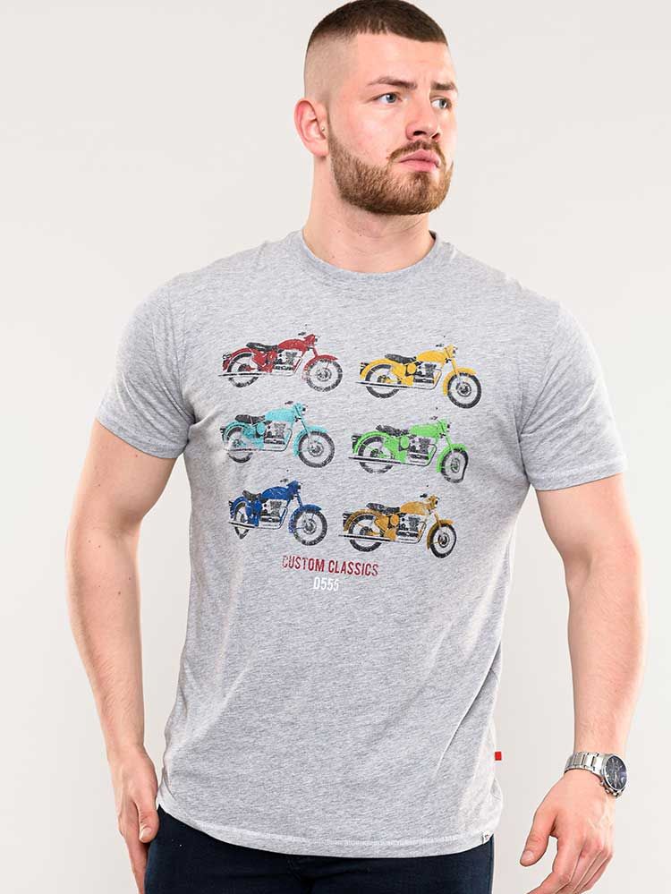 Guide des tailles - D555 Bathurst Custom Classics Motorbike Printed T-Shirt Grey