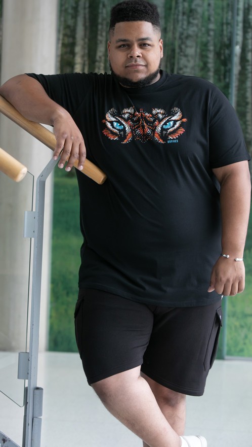 Guide des tailles - D555 Leamington Tiger Eyes Printed Crew Neck T-shirt Black