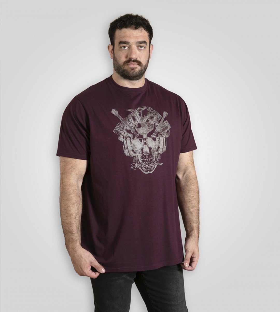 D555 Grimsby Rock n' Roll Skull Printed T-Shirt Burgundy