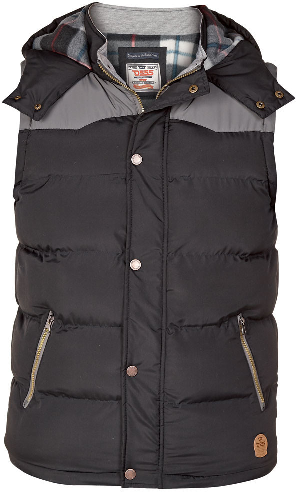 D555 FELIPE Zip Through Padded Gilet With Contrast Colour Lining And Rubber Badge Black