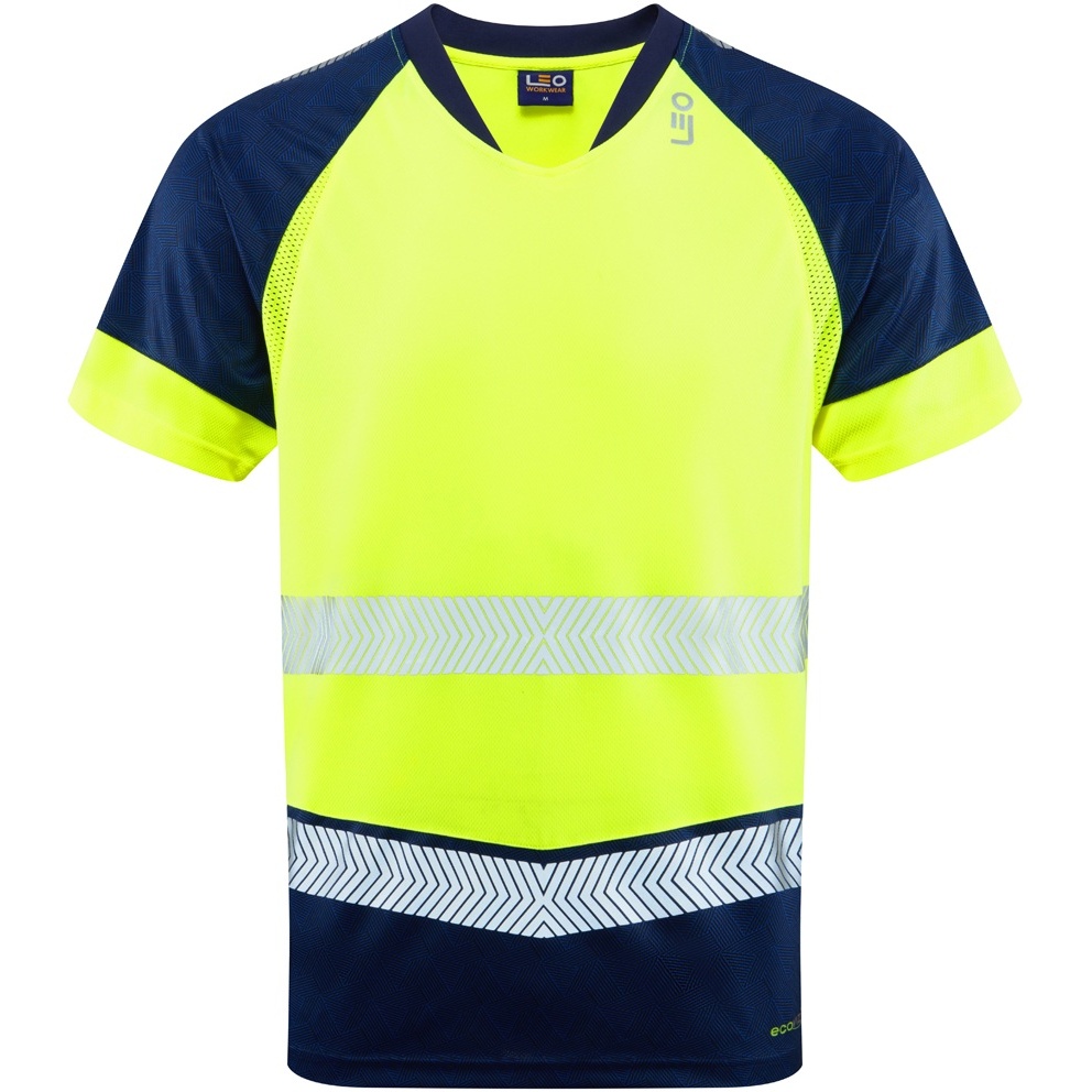 Guide des tailles - Leo Forda Ecoviz Performance+ Dual Colour T-Shirt Hi-Vis Yellow/Navy Print