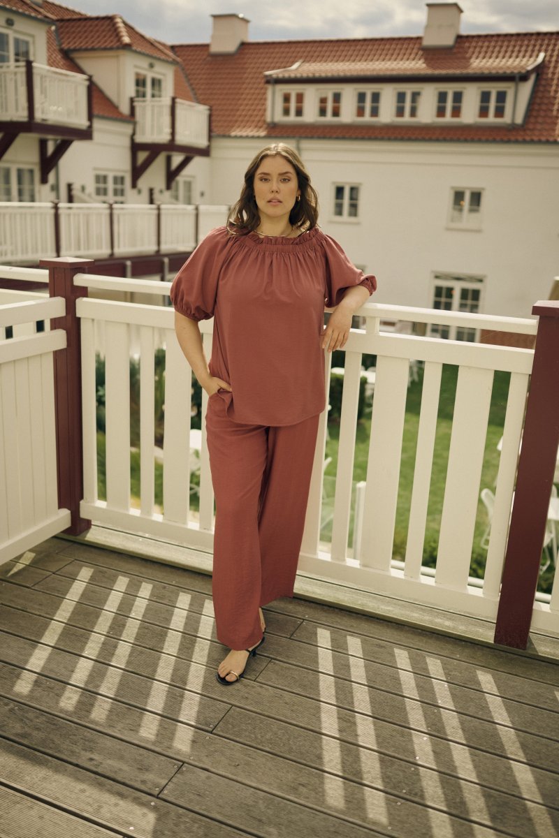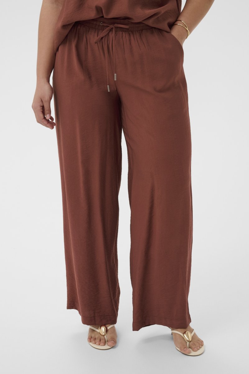 PantalonDisponible dans les tailles 42–54De la marque Kaffe CurveMatière : 85 % viscose, 15 % polyamideCoupe ampleCouleur marronCliquez ici pour afficher le guide des tailles
