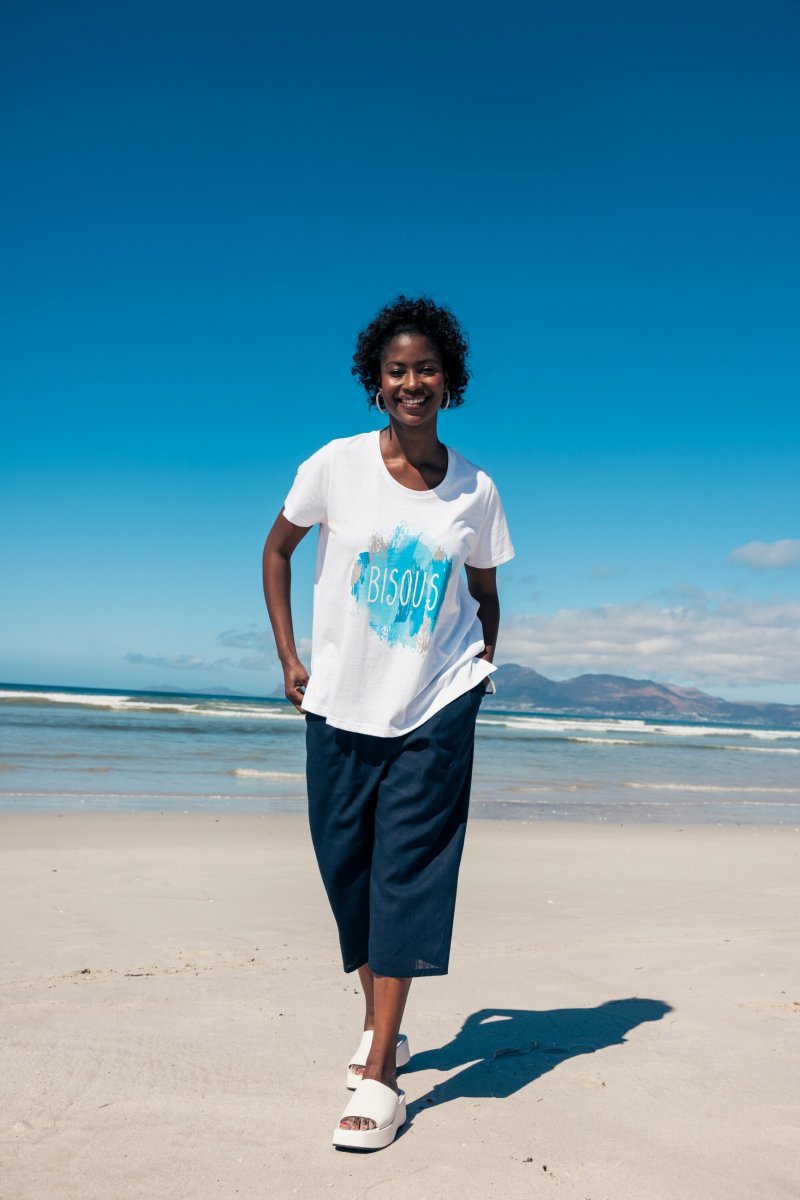 Ulla Popken Cropped Linen Blend Elastic Waist Pants Navy