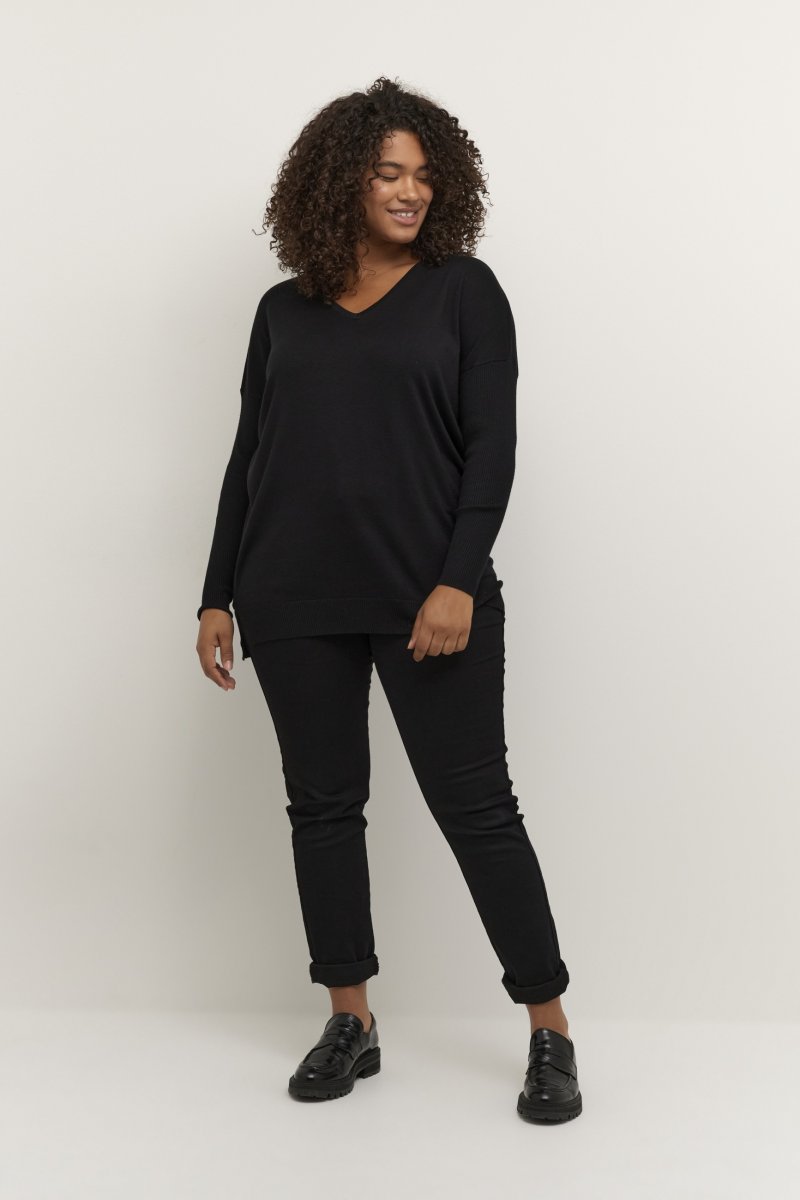 Sweat-shirt femmeDisponible en tailles 42–56De la marque Kaffe CurveFabriqué en 80% viscose et 20% nylonCoupe ampleCouleur noireCliquez ici pour afficher le guide des tailles