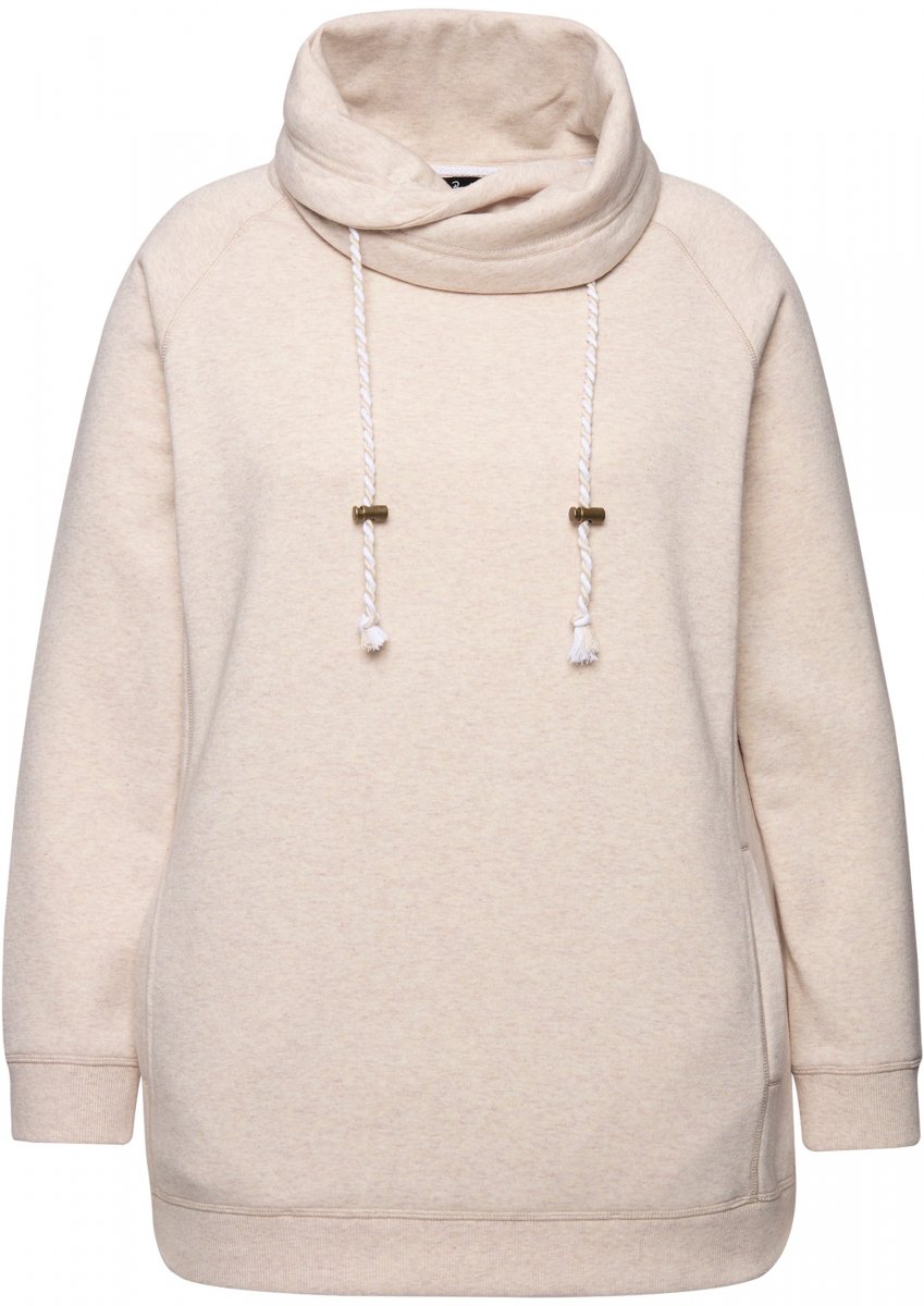Ulla Popken Drawstring Collar Long Sleeve Sweatshirt Nature Melange