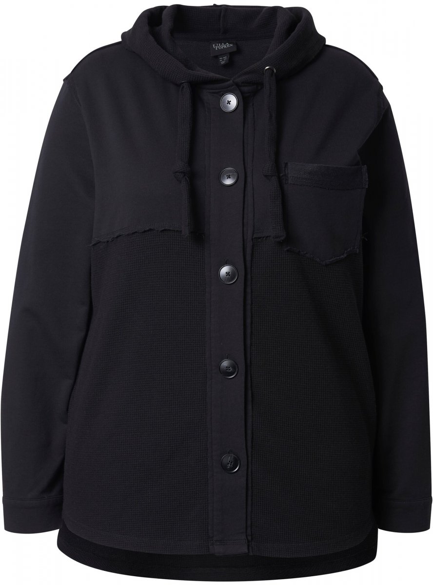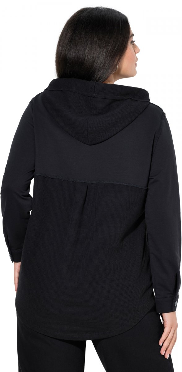 Ulla Popken Mixed Texture Button Down Hoodie Black