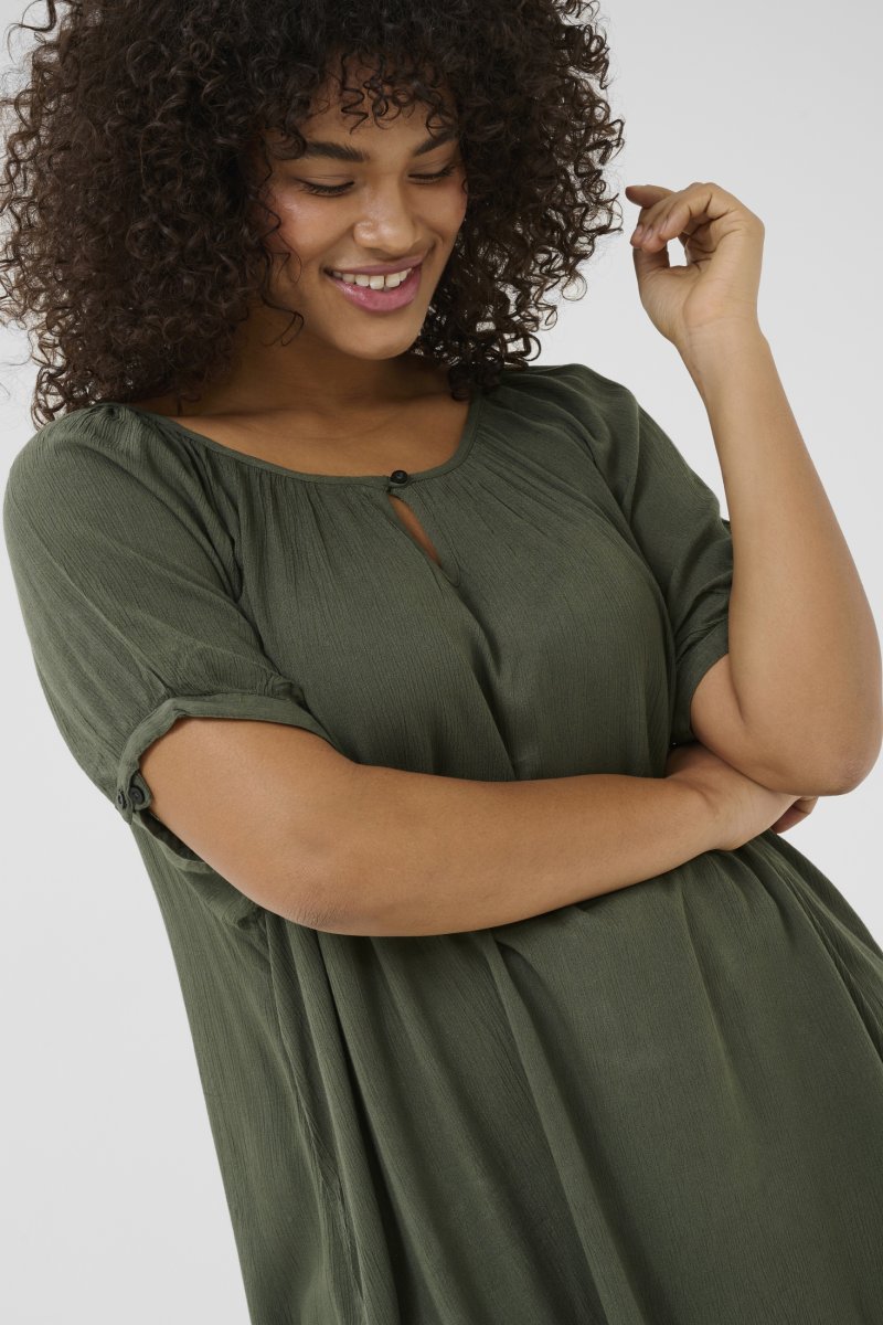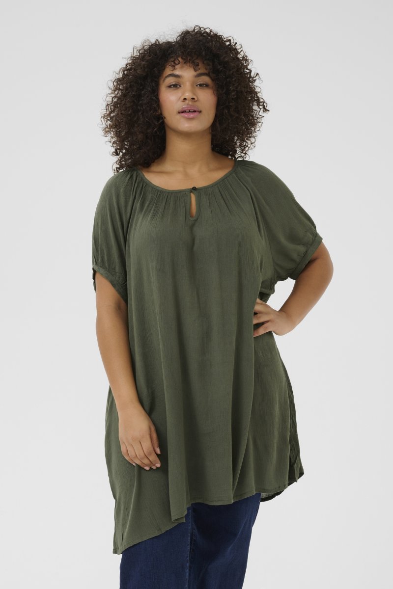 TuniqueDisponible en tailles 42–56De la marque Kaffe CurveFabriqué en 100% viscose (LENZING™ ECOVERO™)Coupe ampleCouleur vertCliquez ici pour afficher le guide des tailles