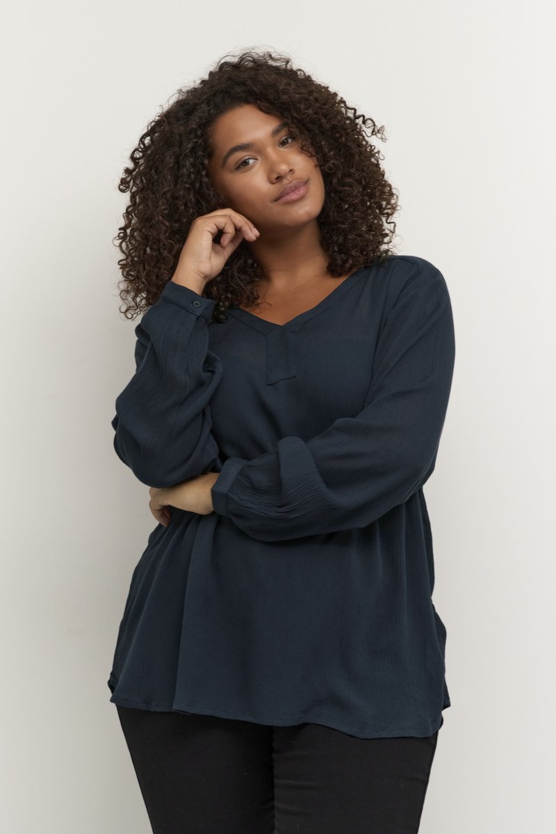 Blouse à manches longuesDisponible en tailles 42–56De la marque Kaffe CurveFabriqué en 100% viscose (LENZING™ ECOVERO™)Coupe classiqueCouleur marineCliquez ici pour afficher le guide des tailles