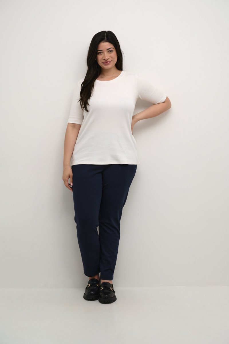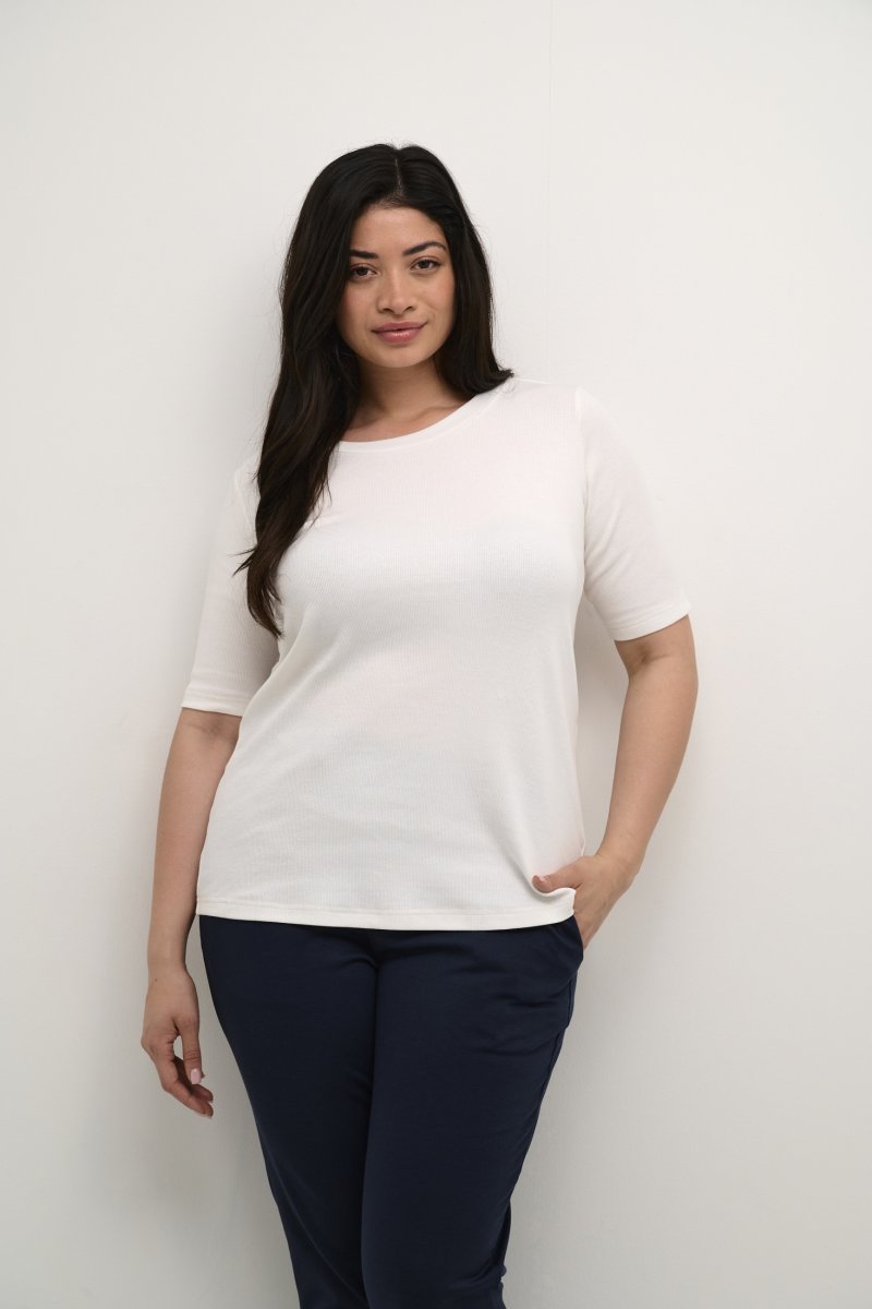 T-shirtDisponible du S au XLDe la marque Kaffe CurveFabriqué en 95% coton et 5% élasthanneCoupe ajustéeCouleur blancCliquez ici pour afficher le guide des tailles