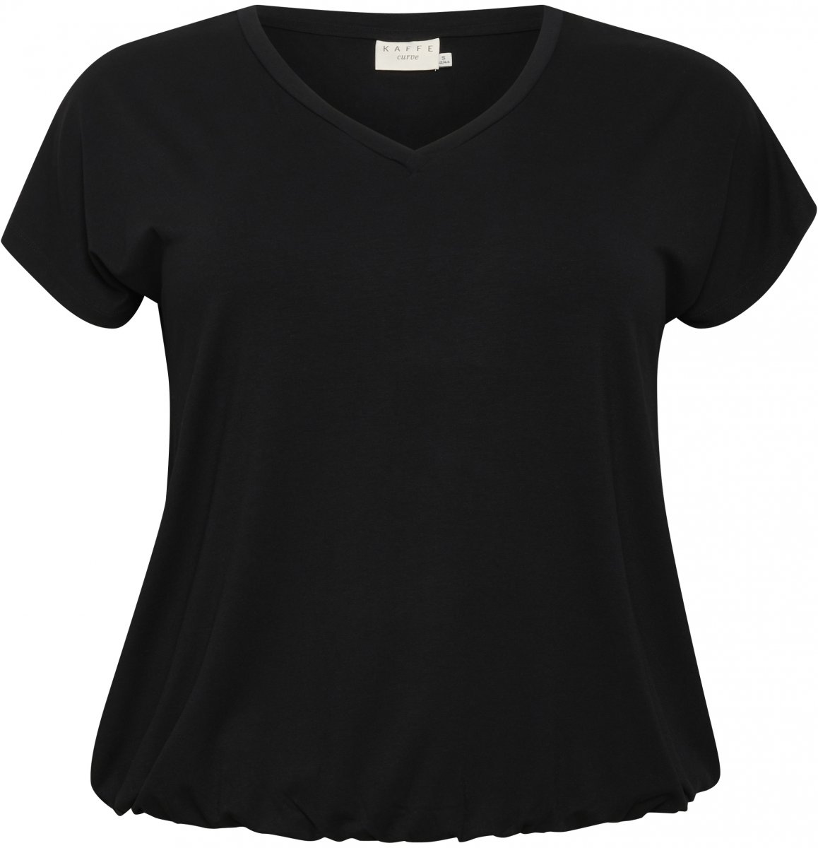 T-shirtDisponible du S au XLDe la marque Kaffe CurveFabriqué en 95% viscose et 5% élasthanneCoupe ampleCouleur noireCliquez ici pour afficher le guide des tailles