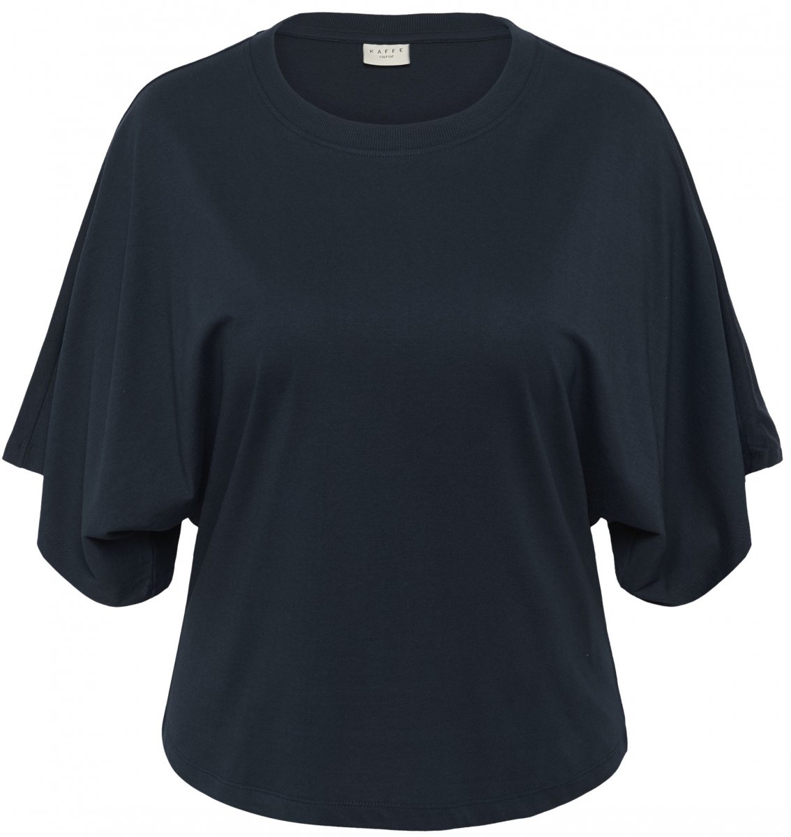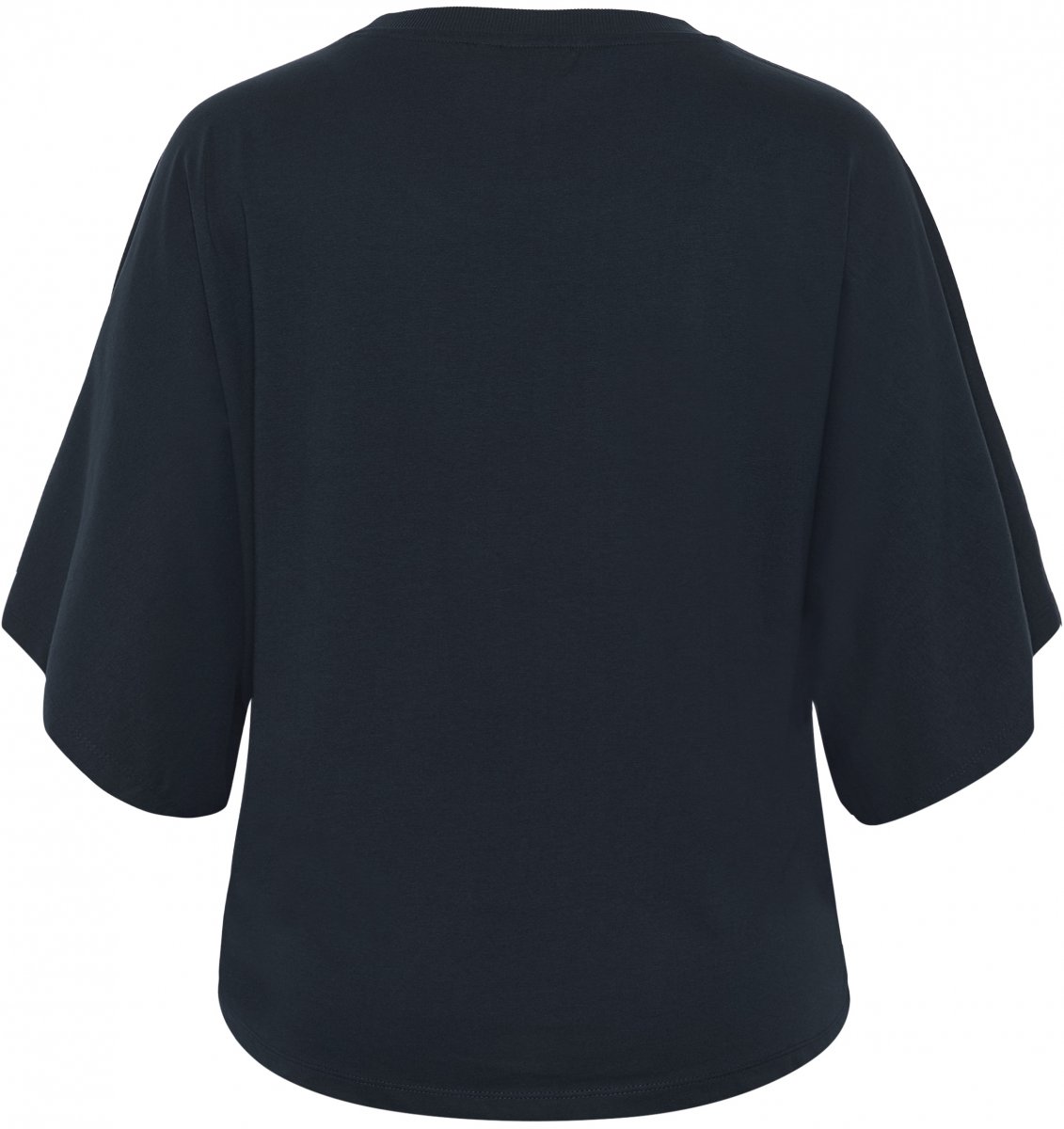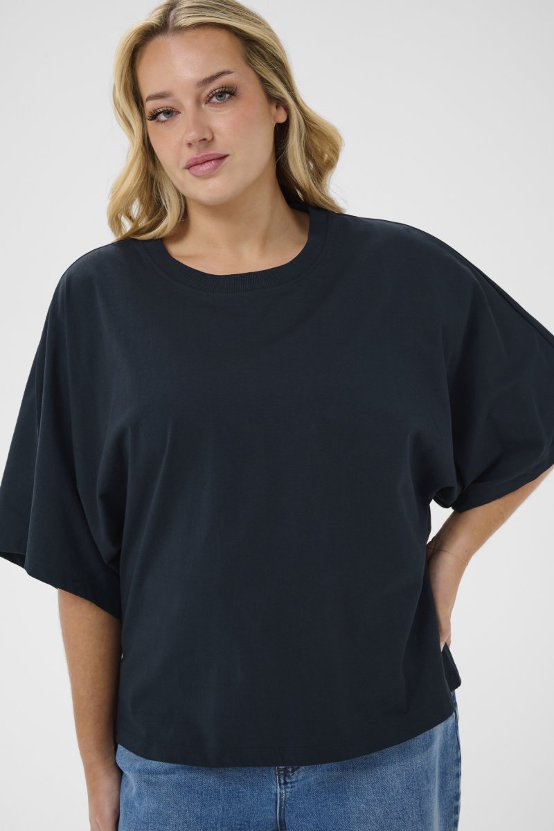 T-shirtDisponible du S au XLDe la marque Kaffe CurveFabriqué en 100% cotonCoupe ampleCouleur marineCliquez ici pour afficher le guide des tailles