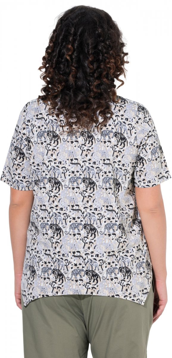 Guide des tailles - Ulla Popken Half-sleeve A-line V-neck Pointed Hem Animal Pattern T-shirt Moss