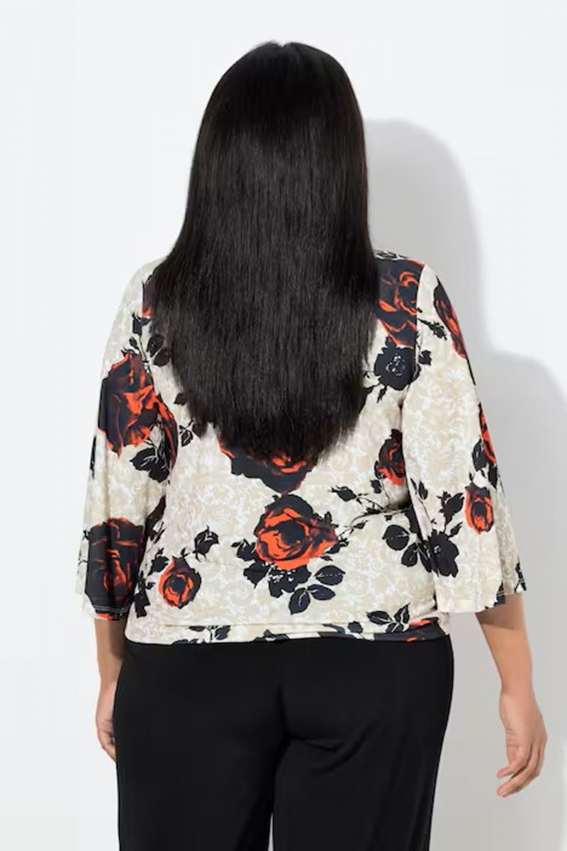 Guide des tailles - Ulla Popken Rose Print Faux Wrap Top Off-White