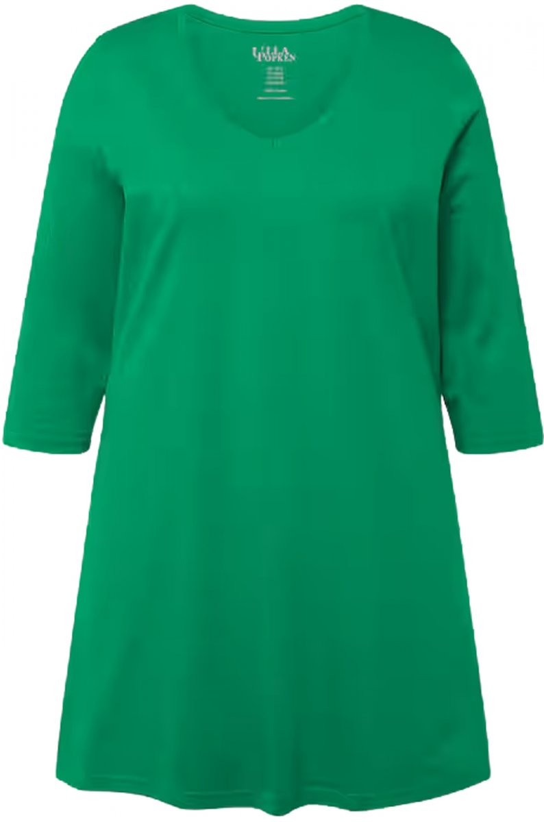 Ulla Popken V-Neck Swing A-line Hem Cotton Knit Tunic Emerald Green